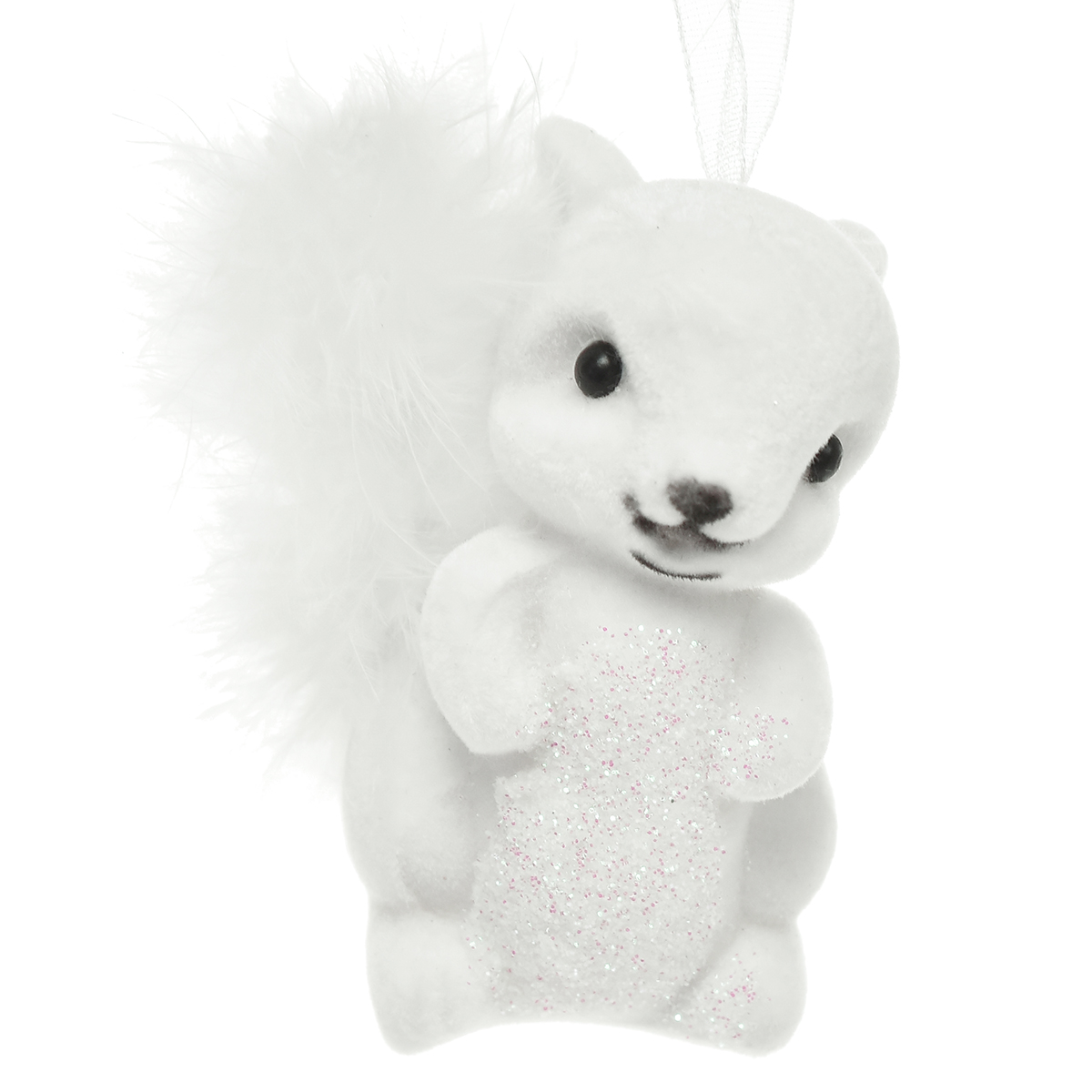 - Exquisite white squirrel decoration with shimmering glitter details