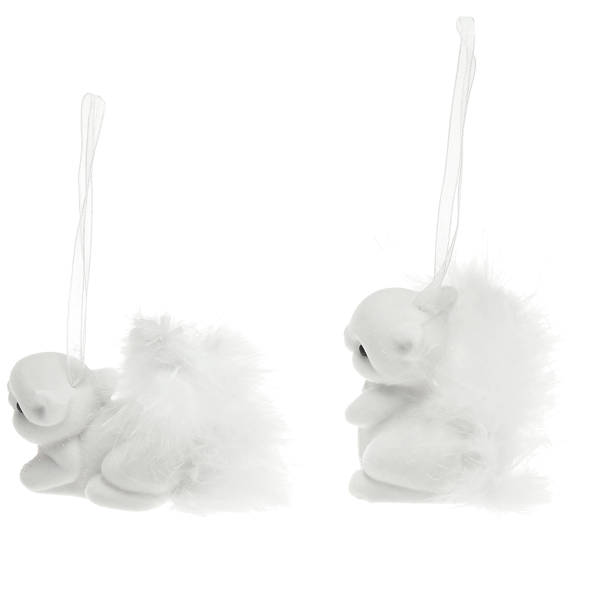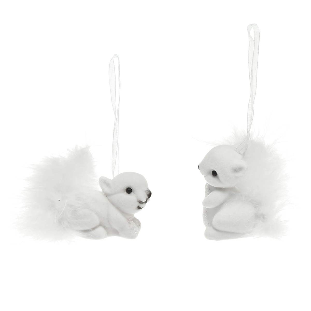 Product name: White squirrel 6 cm pendant with glitter and feather detail – perfect for festive Christmas tree decoration – 2pcs