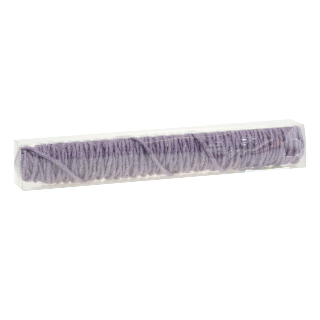 You will receive the 55 meter long purple wick thread rolled up in an elongated plastic box. The decorative cord consists of 29% jute and 71% sheep's wool.
