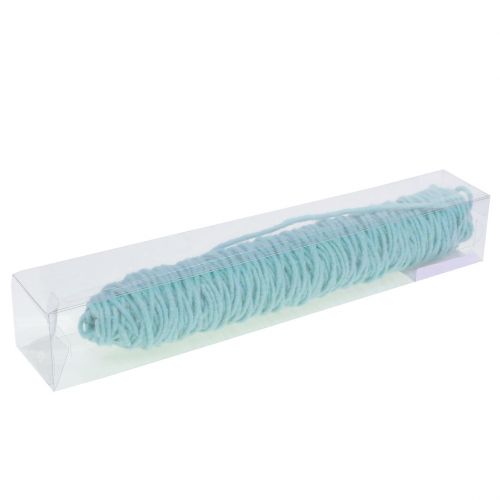 You will receive the approximately 55 meter long, light blue wick thread rolled up in an elongated plastic box. The decorative cord consists of 29% jute and 71% wool.