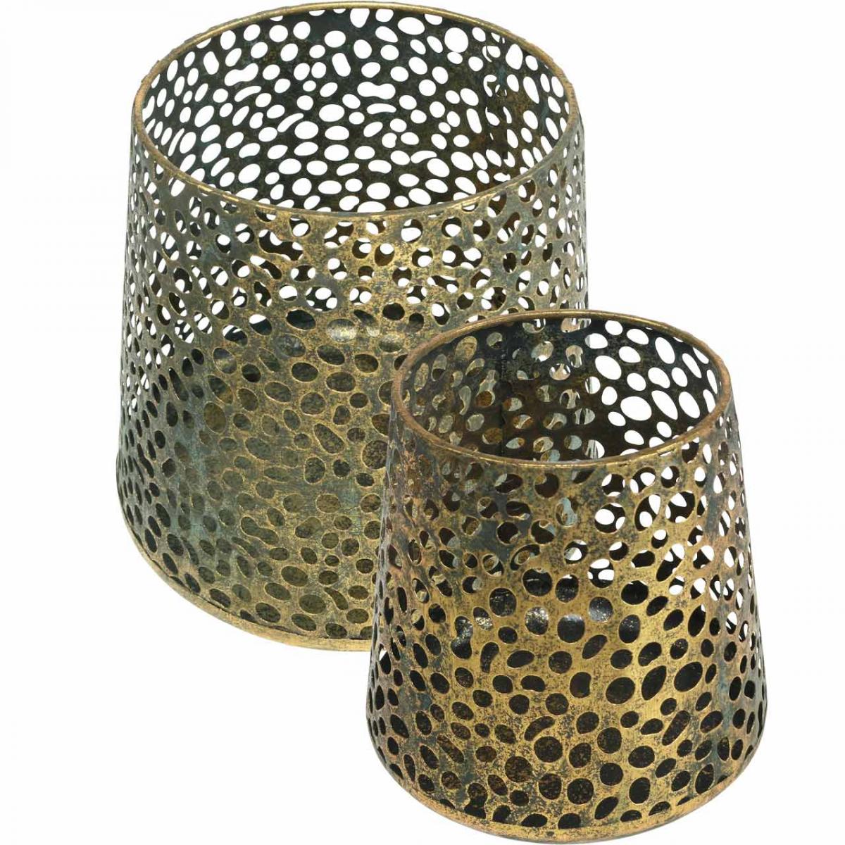 Wind light lantern golden Ø14/20.5cm H14.5/19.5cm set of 2