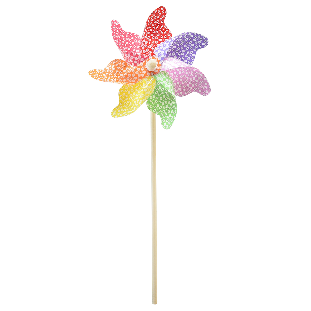 You will receive the plastic wind turbine on a natural wooden stick with seven blades. In the windmill decoration, these are decorated with a floral pattern and have a different color. This creates a colorful mix of: orange, pink, red, purple, pink, green and yellow.