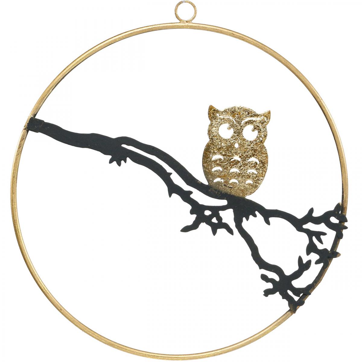 Product name: Window decoration owl on branch autumn, decorative ring metal 22cm