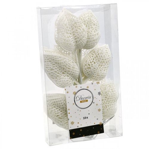 Winter decoration, deco leaves, artificial branch white glitter L36cm 10p