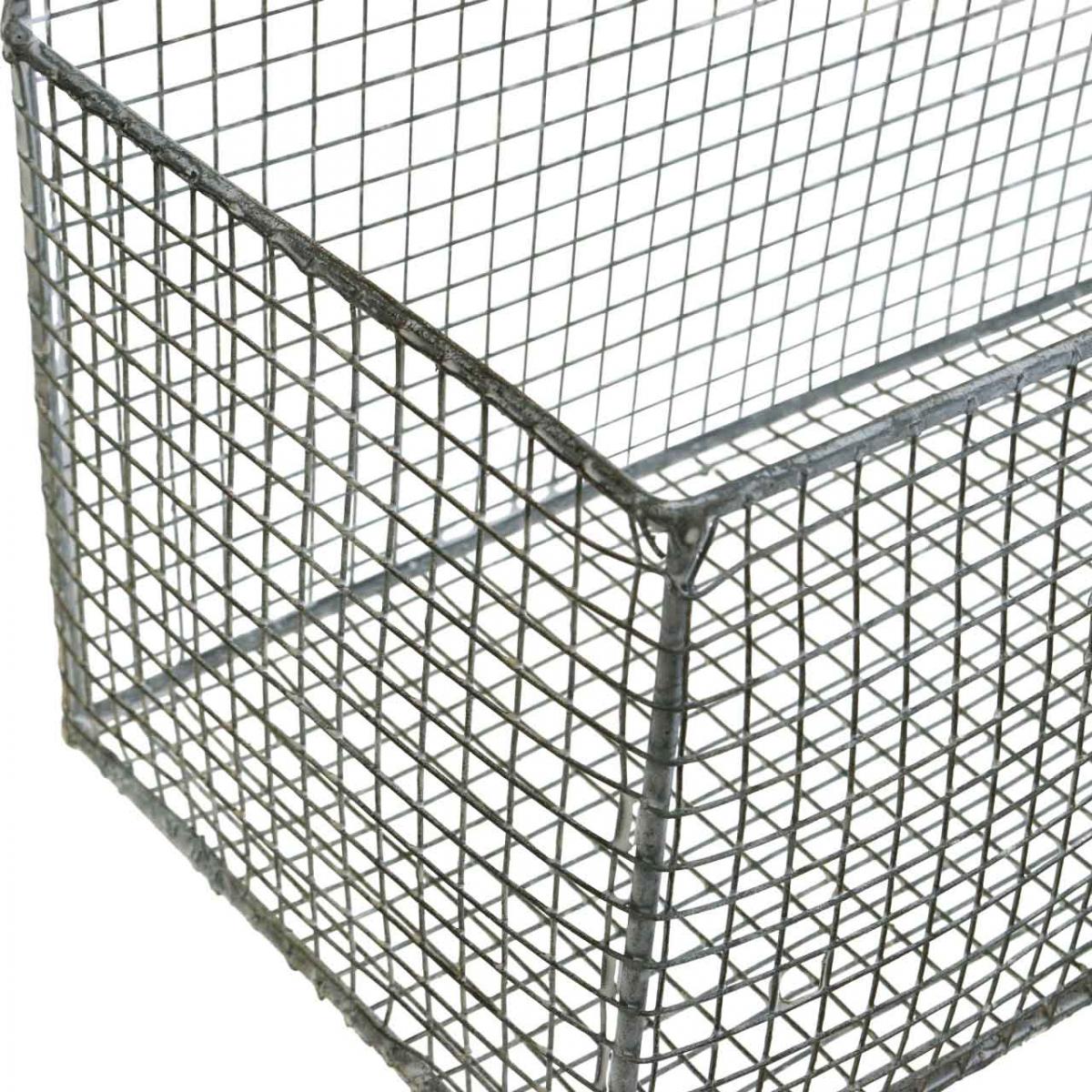The wall basket made of metal offers enough space for a variety of designs. Made of wire mesh and fitted with a round hanger on the high back, the plant basket can be hung up or stand on its rectangular base.