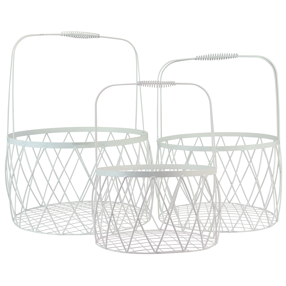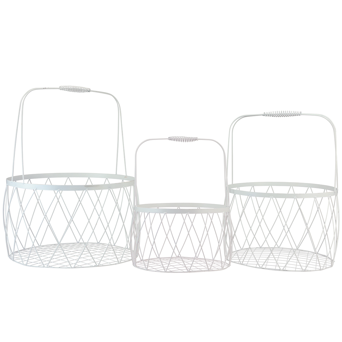 Wire basket with handle basket white metal Ø25/30/35cm set of 3