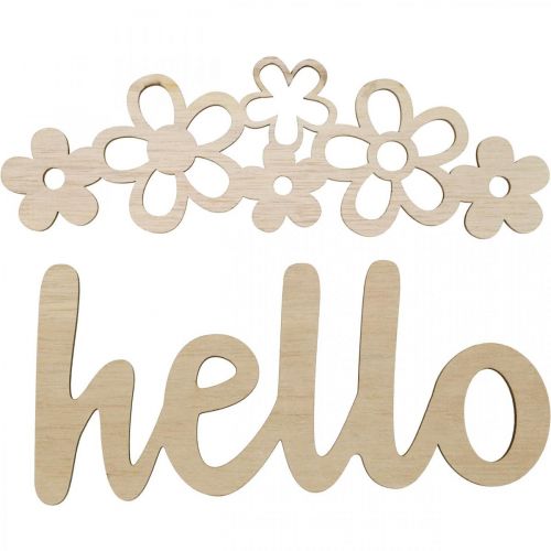Product name: Wooden decoration flowers "Hello" nature deco sign with magnet 18/19.5cm 6pcs