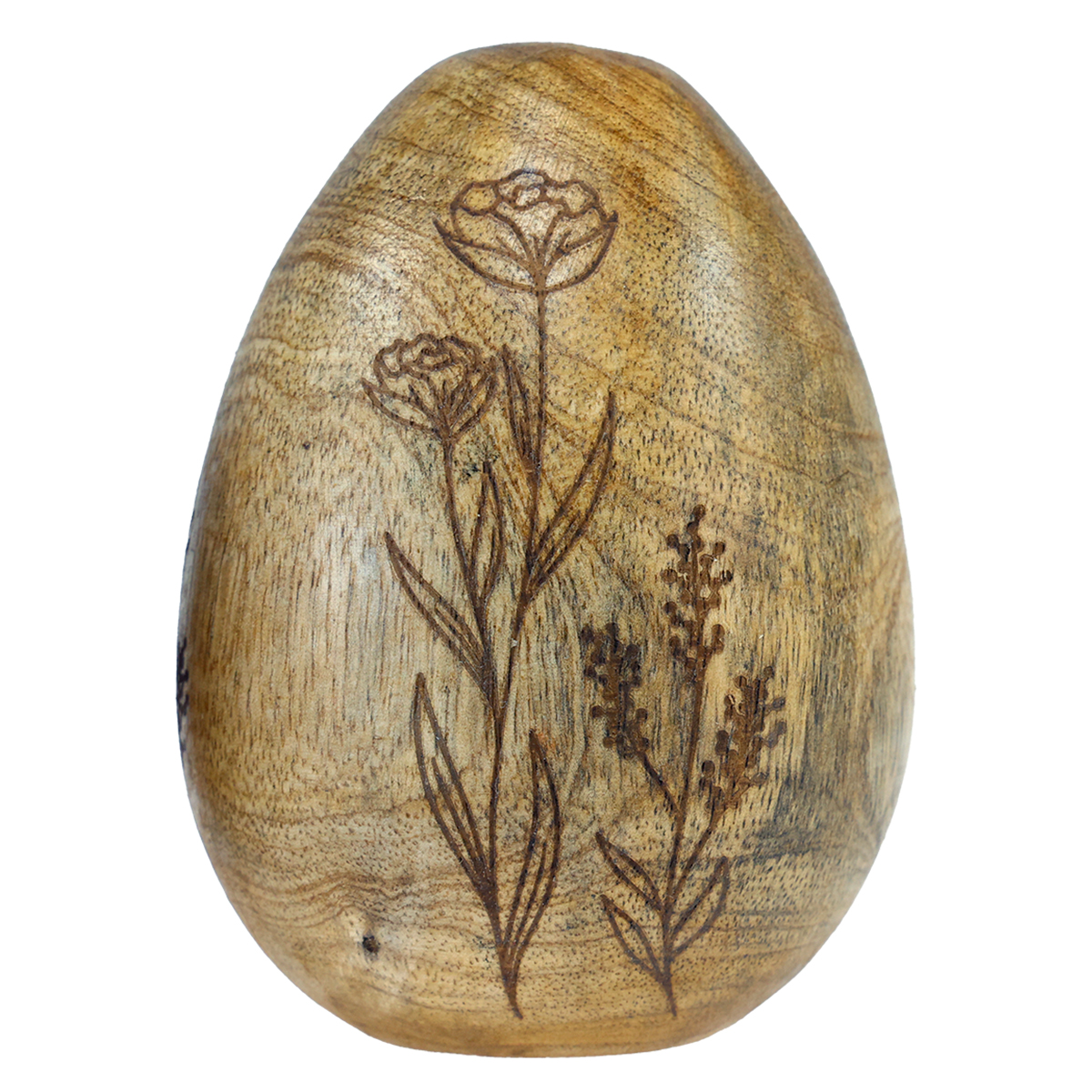 Wooden eggs natural mango wood Easter eggs made of wood flower decor H10cm 3 pcs