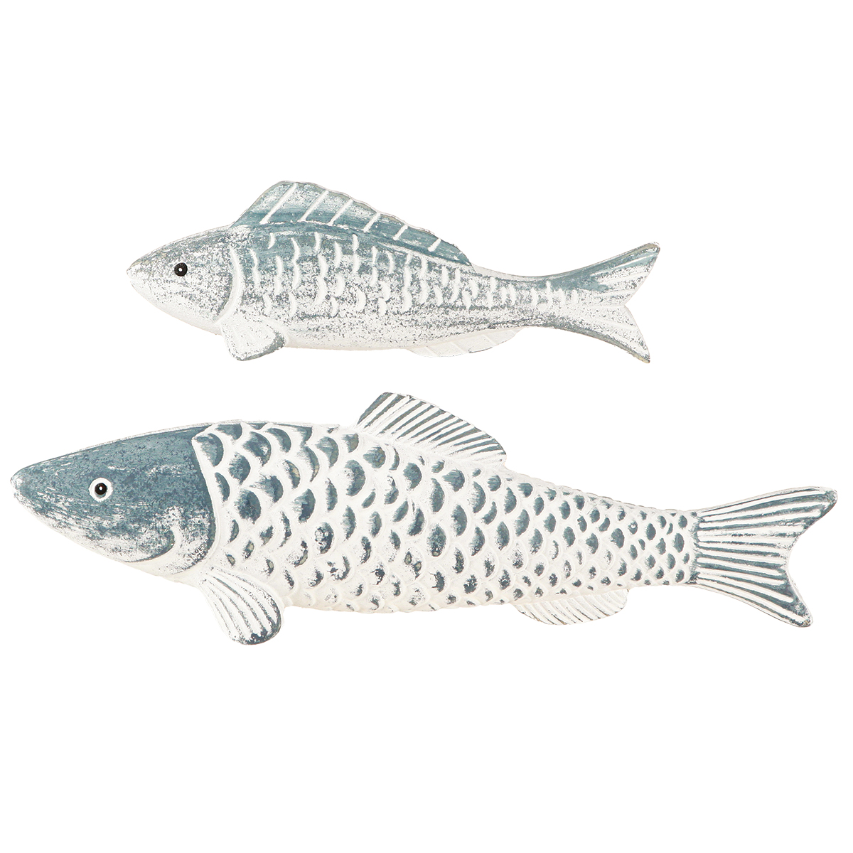 Wooden Fish Blue White Pressed Wood 23cm/35cm Set of 2