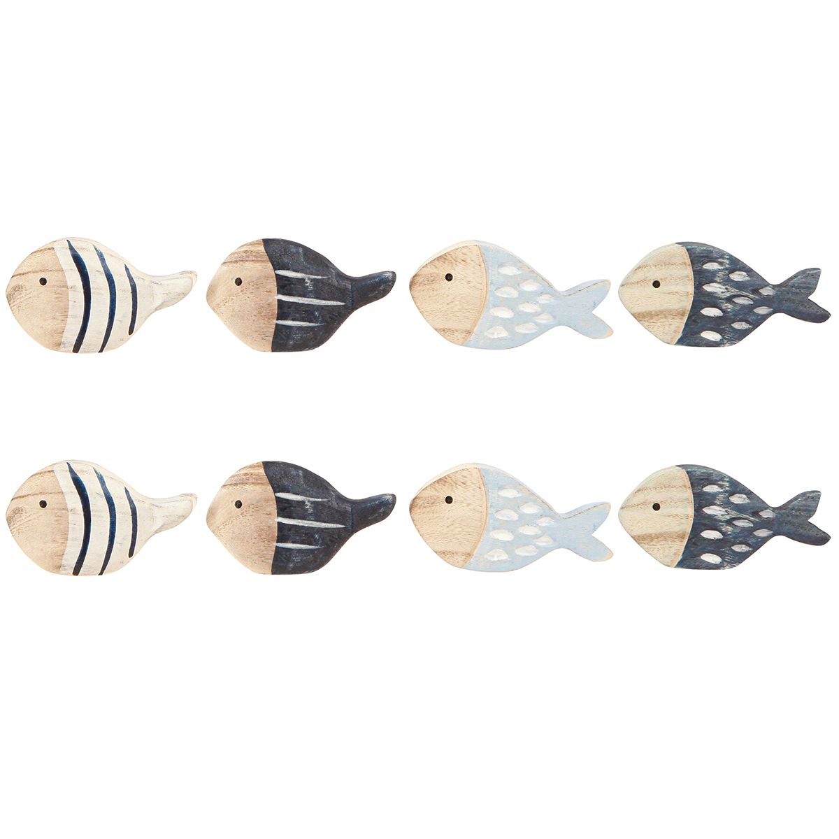 Wooden Fish Maritime Table Decoration Natural Blue White 8-9cm 8 pcs