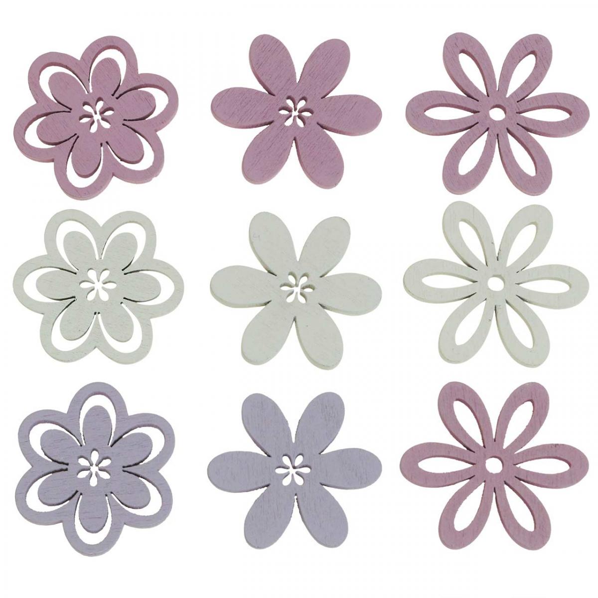 Wooden flowers scatter decoration flowers purple/pink/white Ø3.5cm 48 pcs