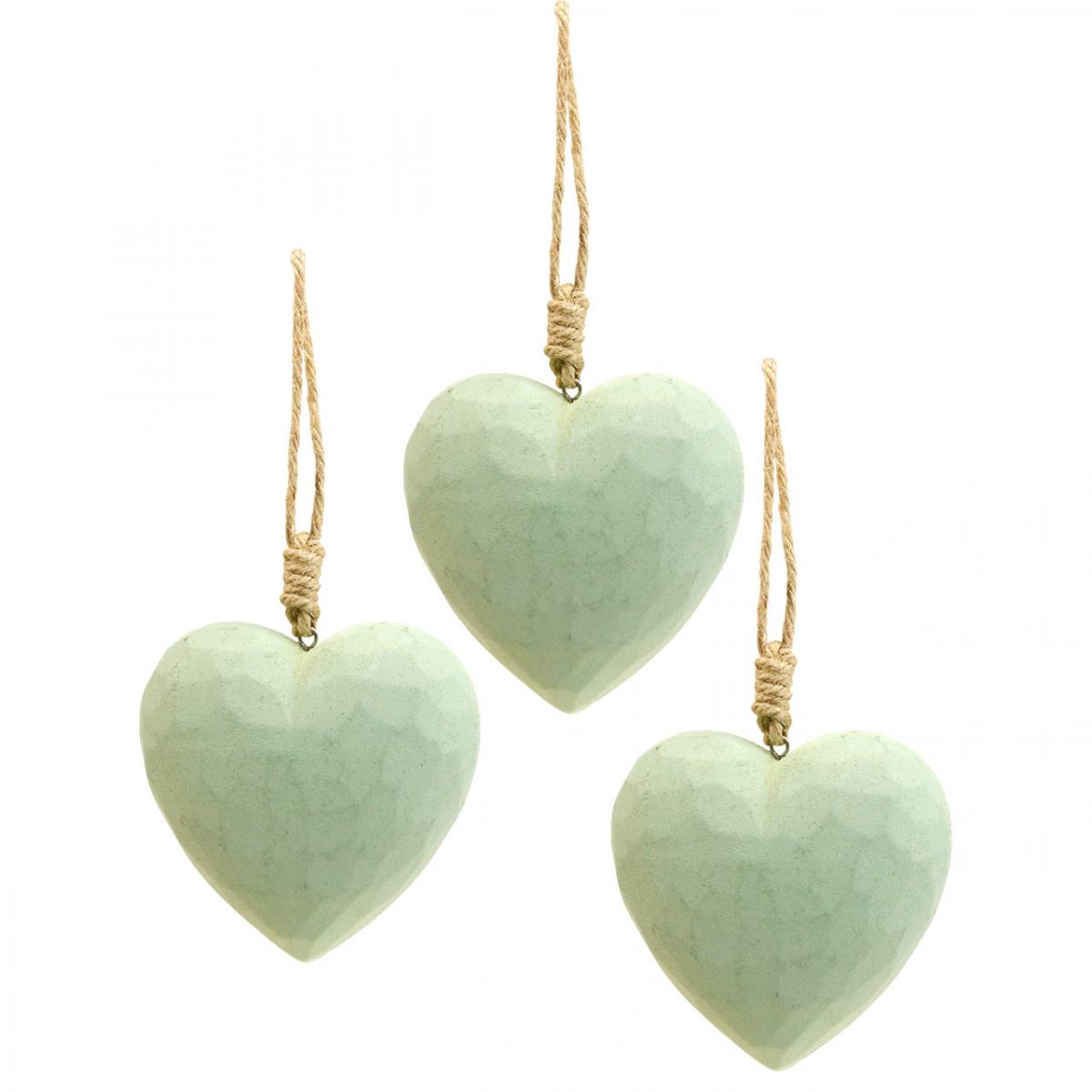 Wooden Heart Decoration Hanging Heart Made of Wood Decoration Green 12cm 3 Pcs