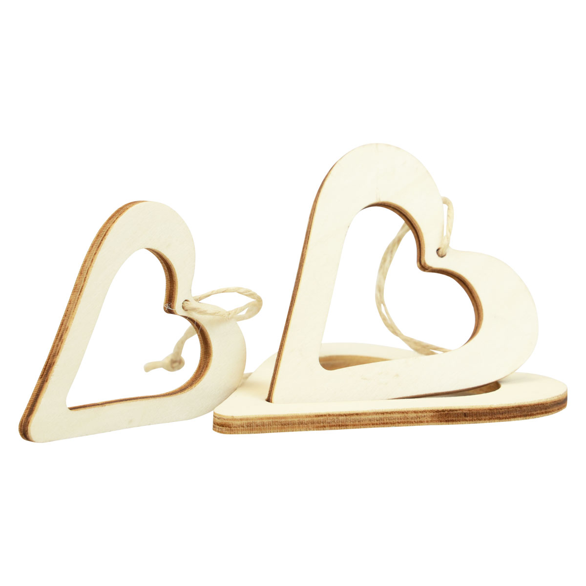 Wooden hearts decoration hanger wooden decoration heart natural 6/8/10/12cm 16 pcs