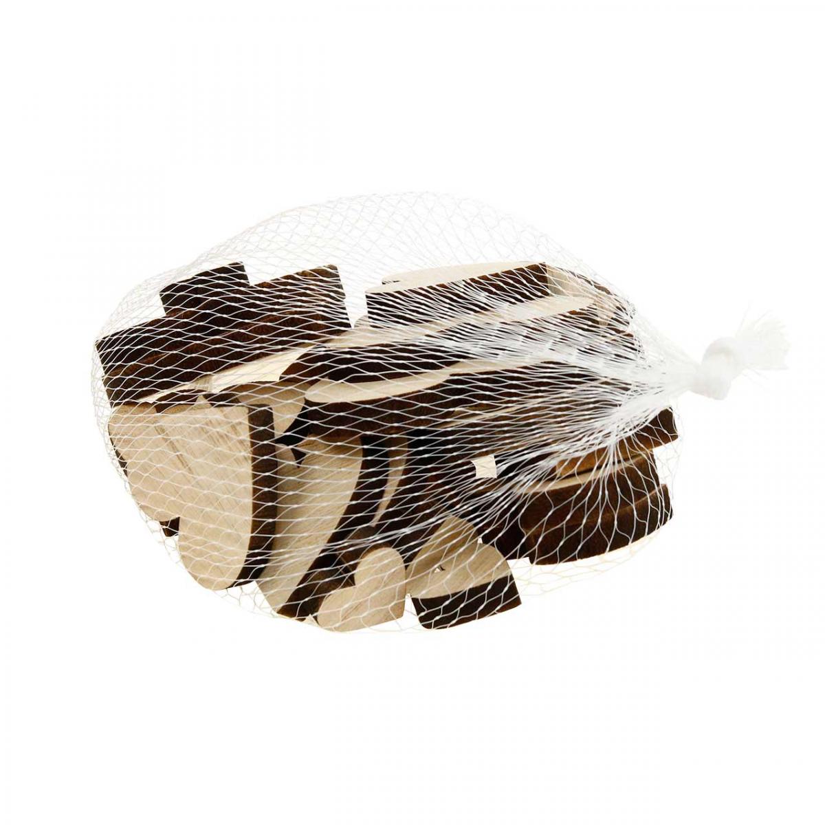 While the surface of the wooden hearts is natural, the edges are designed in a matching dark brown color. This contrast gives the heart decoration for scattering its quaint, rustic charm.