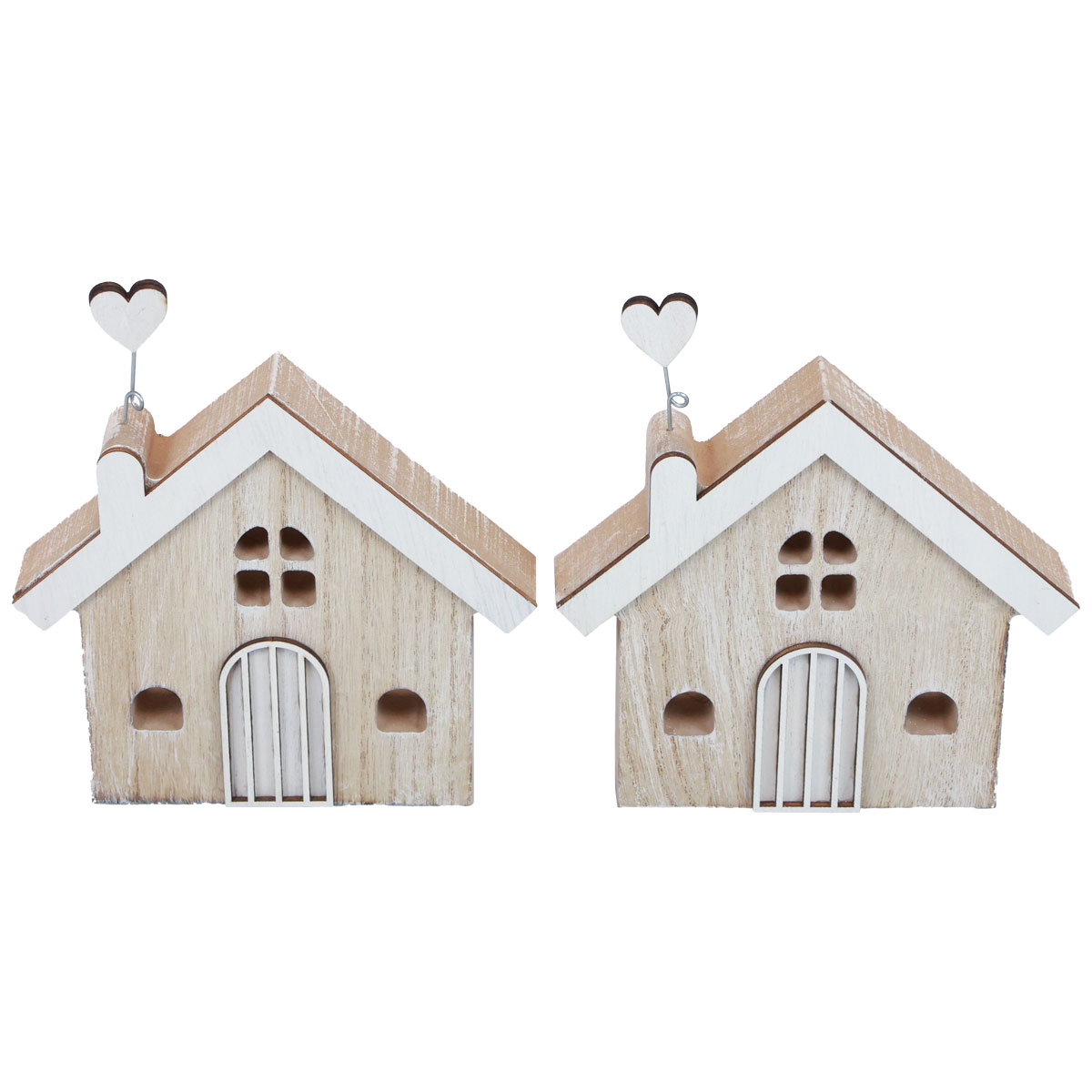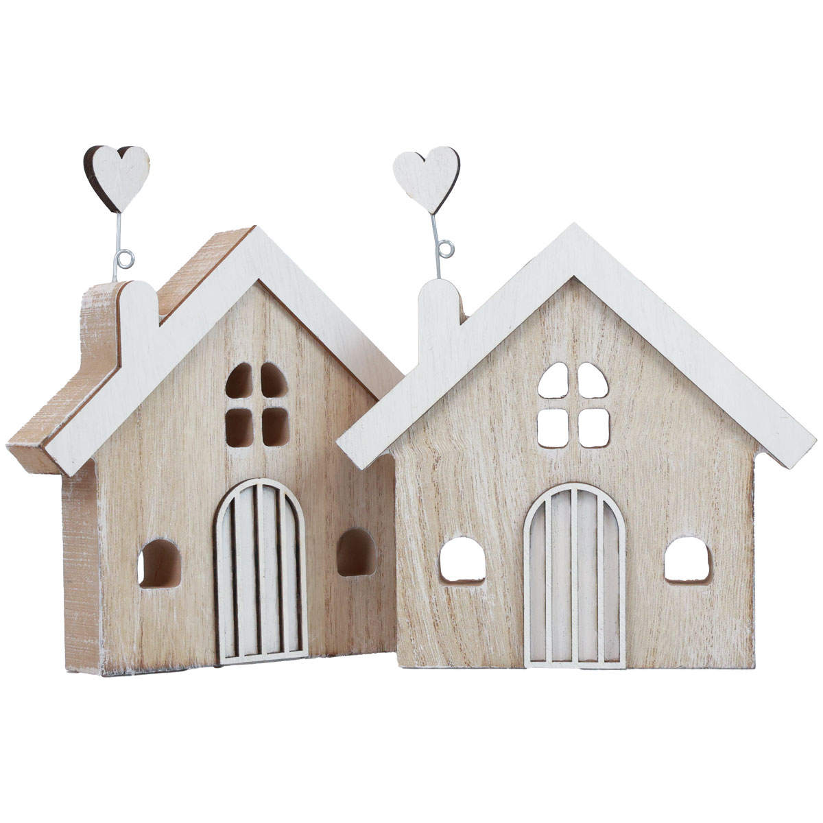 Wooden House Decorative House Table Stand Wood 16.5cm 2 pcs