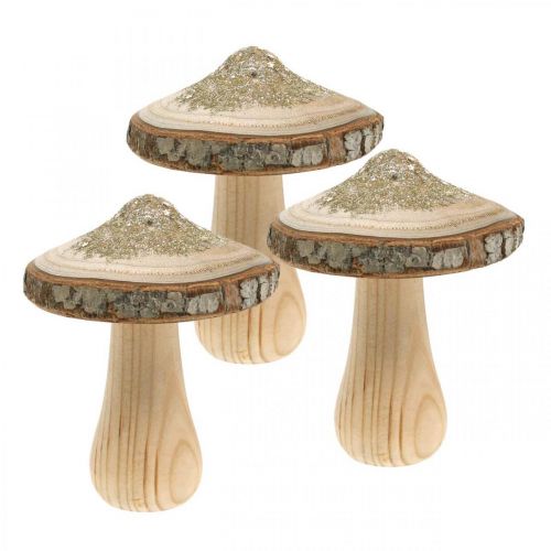 Wooden Mushroom Bark and Glitter Decoration Mushrooms Wood H8.5cm 4 pcs