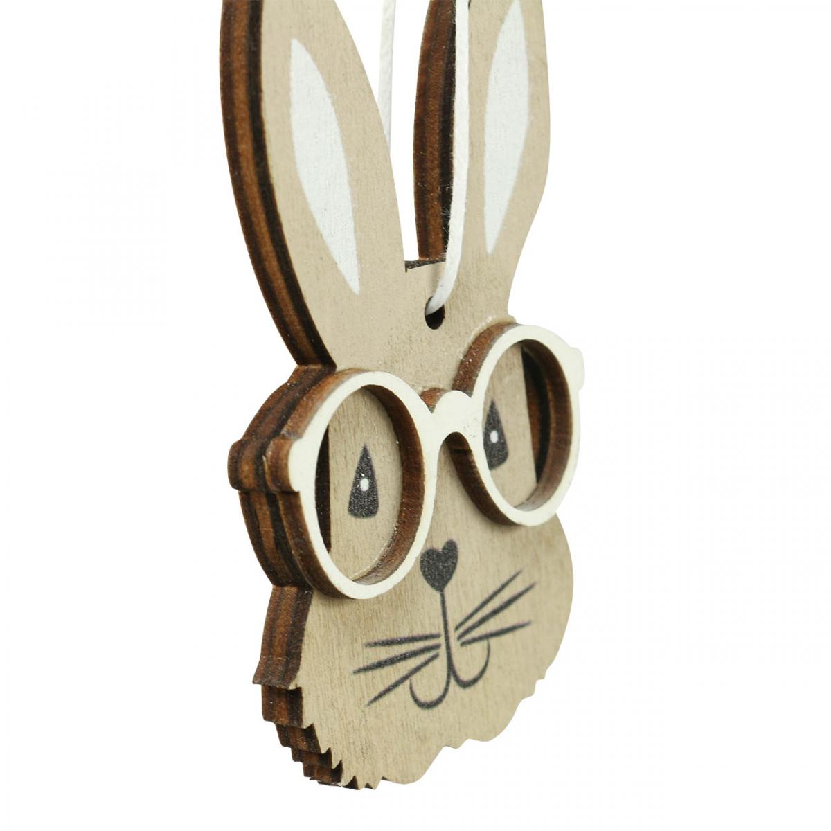 Product name: Wooden pendant rabbit with glasses carrot brown beige 4×7.5cm 9pcs