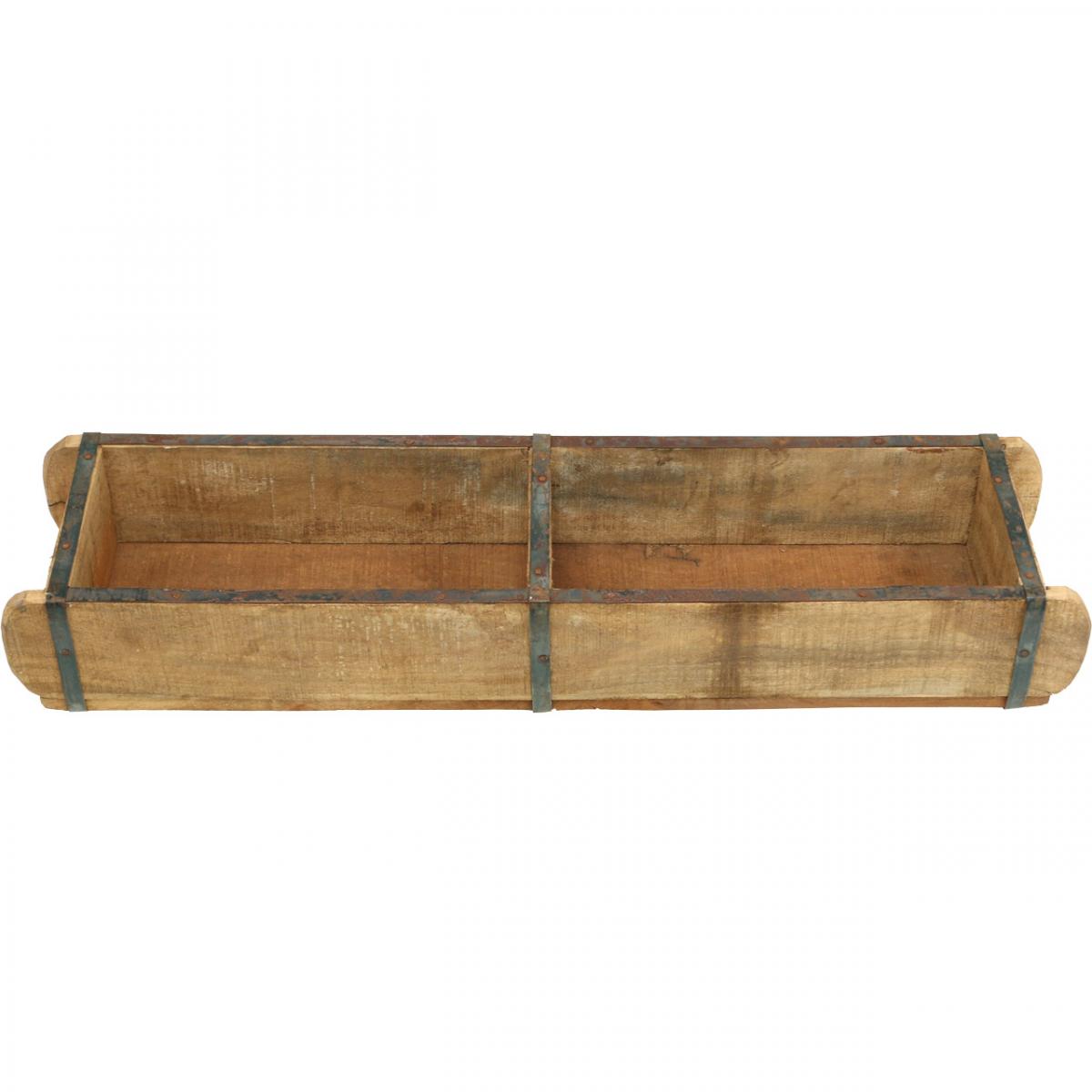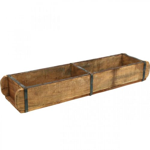Wooden planter with metal fittings, double brick shape, vintage planter L57cm