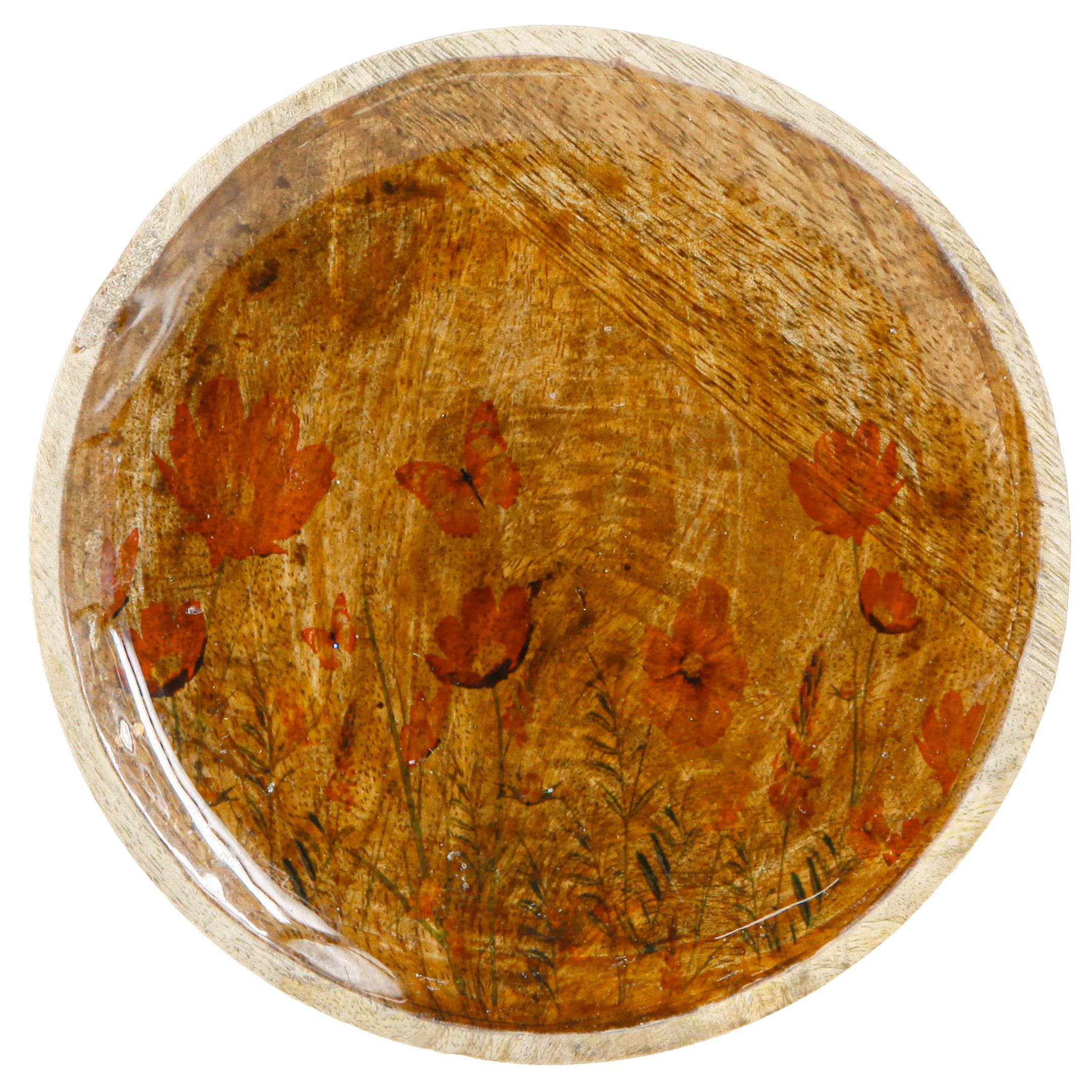 Experience the beauty of nature right on your table with our three wooden plates. Each wooden plate has a diameter of around 15 cm and features a magical flower and butterfly pattern in elegant pink. The natural wood structure is highlighted by a protective, transparent varnish layer that gives the plates a soft shimmer. Ideal as table decorations for spring and summer, these decorative plates add a romantic touch to a modern country house style or vintage decorations.