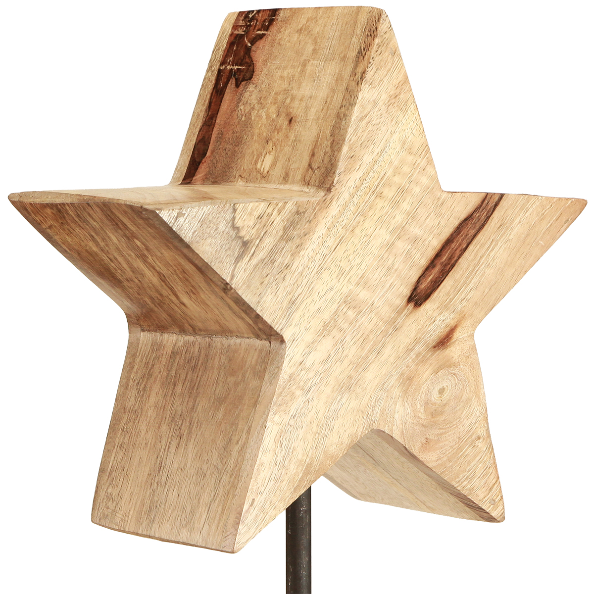 Wooden star natural with stick base star decoration 20x9.5x50cm