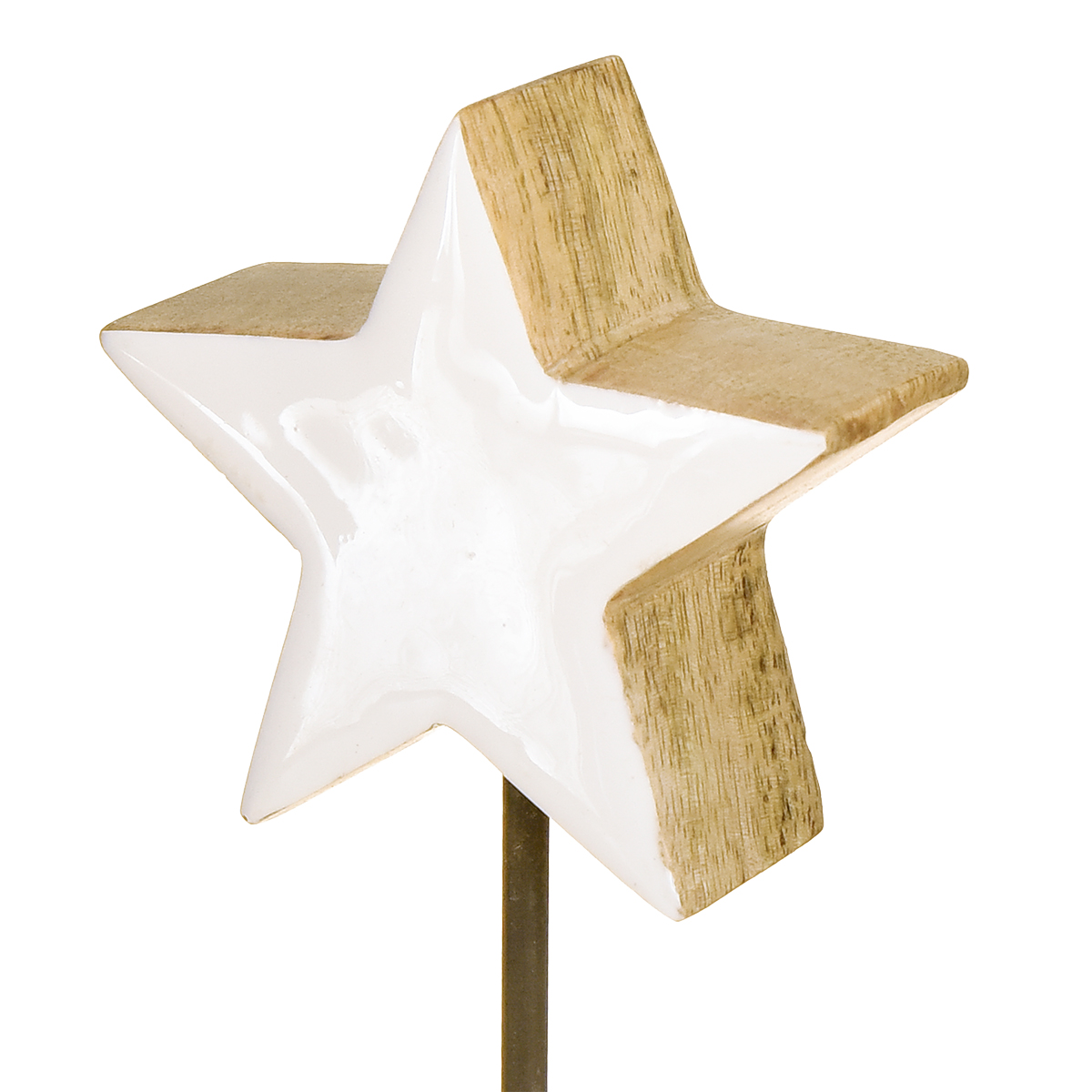 Add an elegant touch to your home with our white wooden stars. This stylish wooden decoration combines the rustic beauty of solid mango wood with a modern, white glaze. This makes the decorative stars ideal for the Christmas season, but also suitable as a year-round accent. Place the wooden stars on your living room table as an eye-catcher or use them as an elegant windowsill decoration. The combination of a white glazed front and a natural-colored back gives the stars a contemporary yet classic look that blends harmoniously into any living space. They are particularly effective when combined with Scandinavian or modern interior styles.