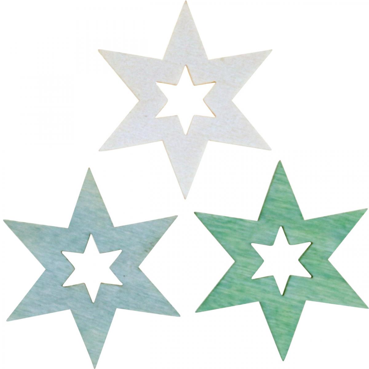 Wooden stars decoration confetti Christmas green H4cm 72 pcs