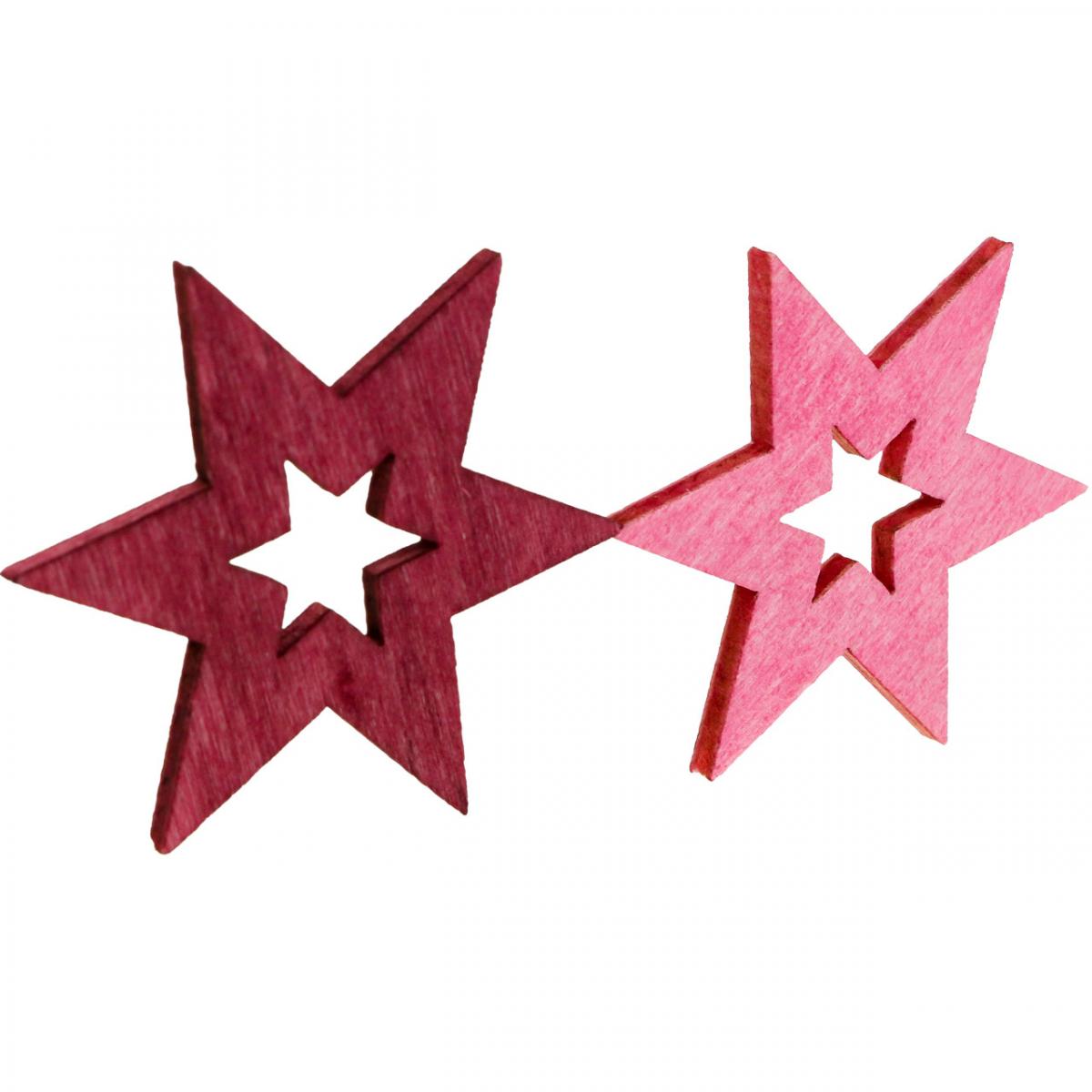 Wooden stars decoration confetti Christmas purple H4cm 72 pcs