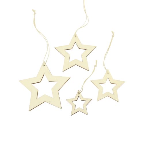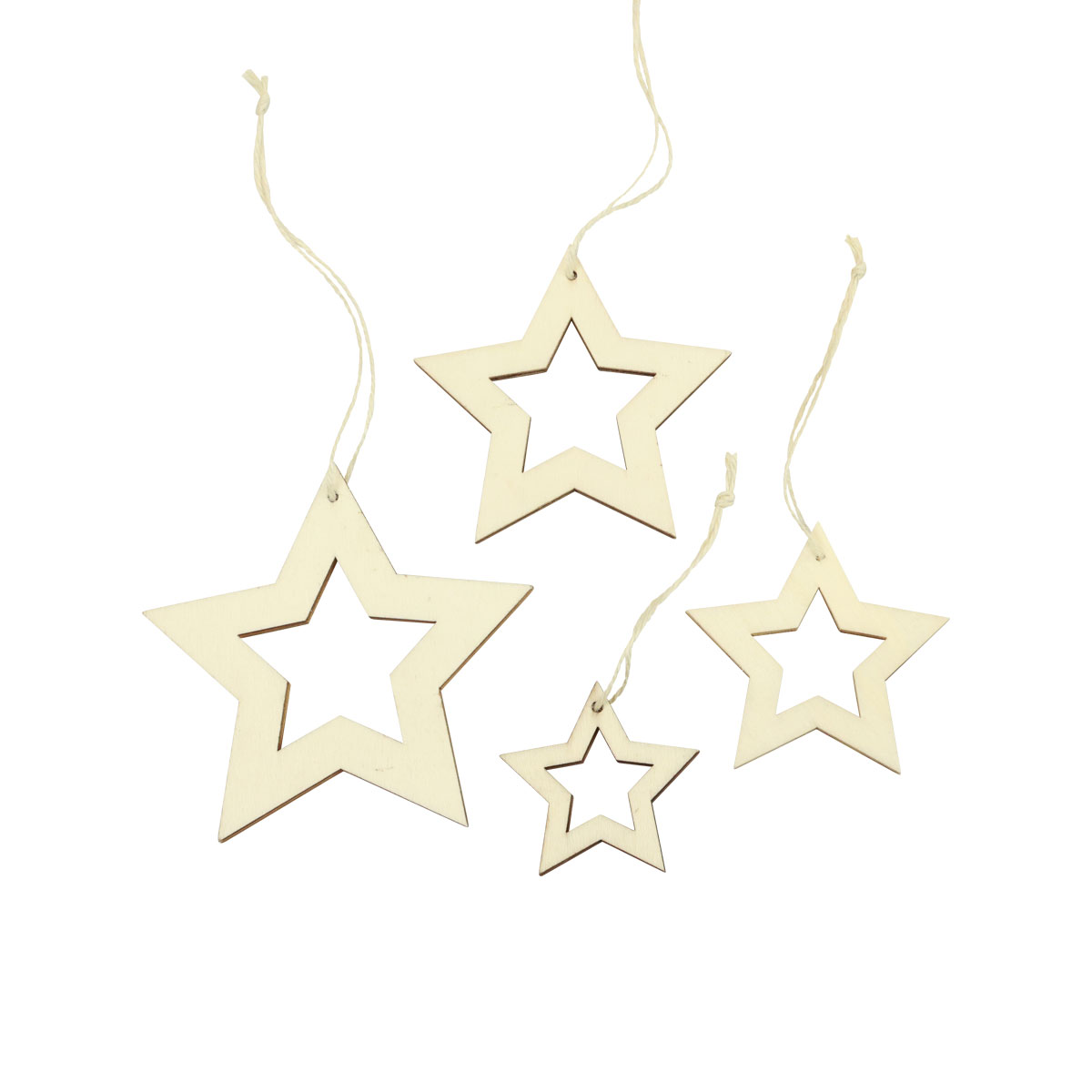 Wooden stars decoration hanging wooden star natural 6/8/10/12cm 16 pcs