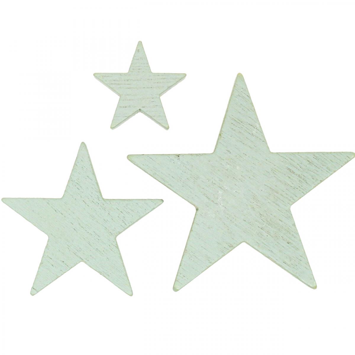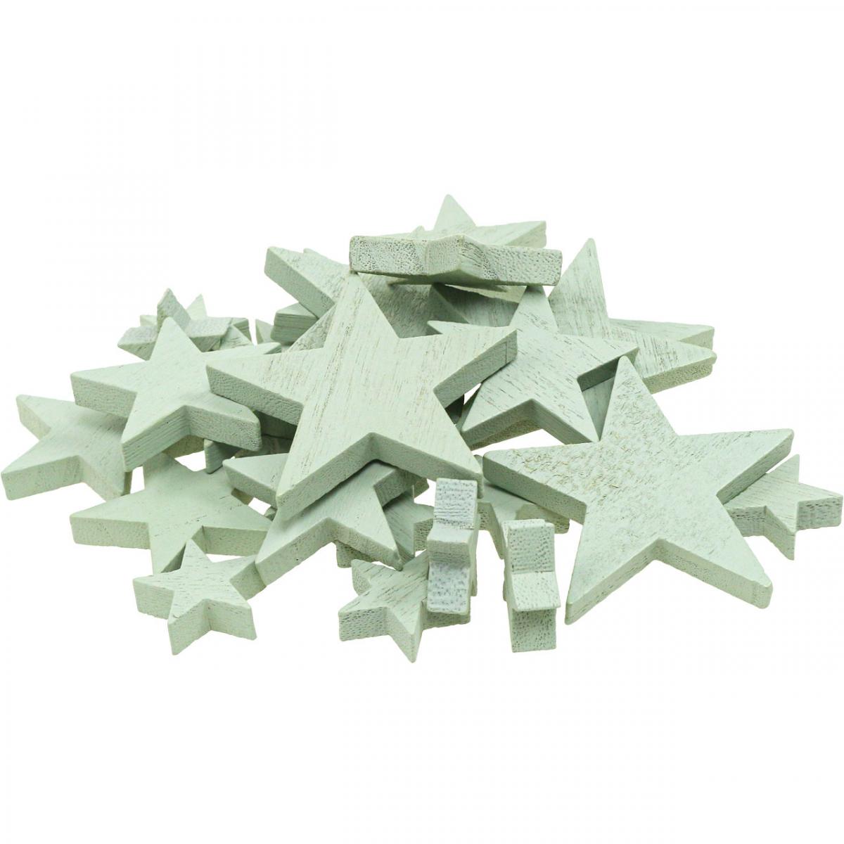 Wooden Stars Decoration Scatter Decoration Christmas Mint 3/5/7cm 29 pcs