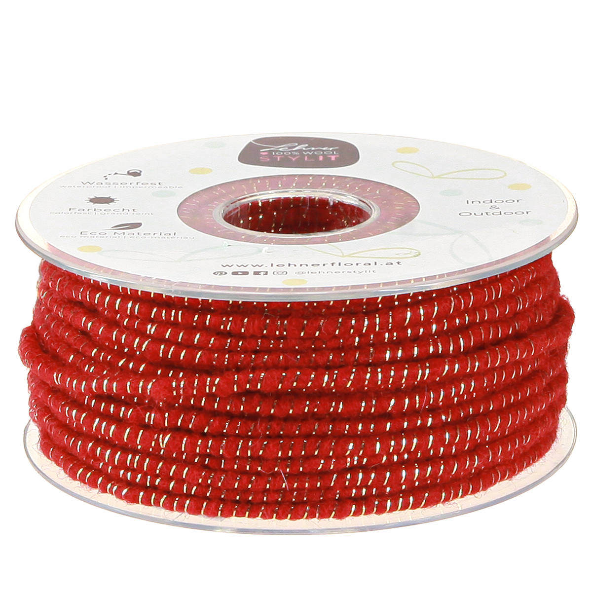 Wool thread with wire felt cord glitter red Ø5mm 33m