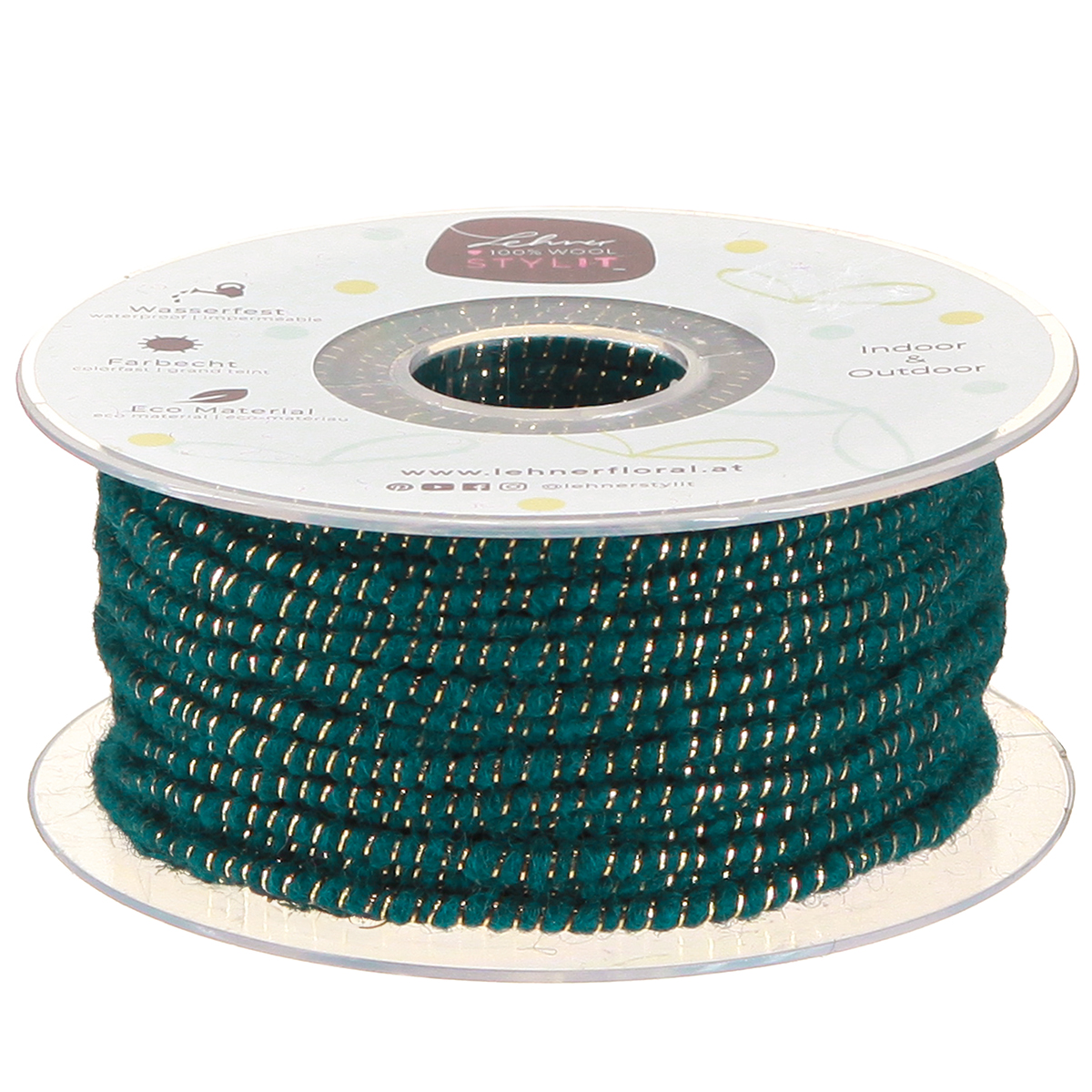 Wool thread with wire felt cord wool cord turquoise gold Ø5mm 33m
