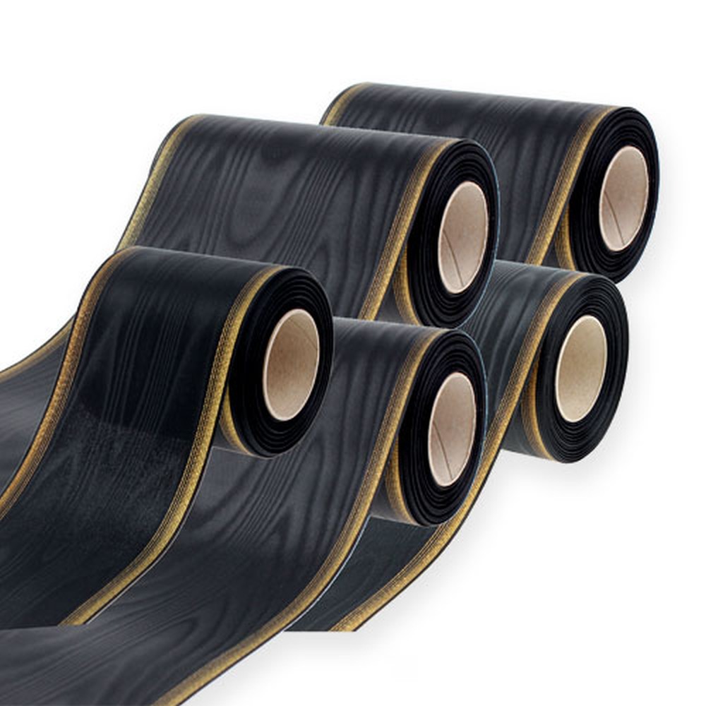 Our exquisite wreath ribbon is of high quality and refined with real French moiré. The woven-in pearl edge in gold makes the black ribbon the ideal companion for funeral flowers. Remunerated with a special finish, the Moiré Kanzband offers good lettering quality for embossing. Despite its high quality, the tape is environmentally friendly, as it rots easily and is also waterproof. The black ribbon is 100 to 200 millimeters wide.