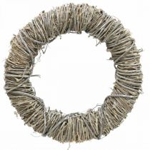 You can either use any wreath made of natural materials unadorned and create a decoration in country house and vintage style or use it as the basis for a thematic wreath such as a Christmas wreath, a funeral wreath or an autumn wreath. The fact that the wooden wreaths consist of many twigs and branches gives you the opportunity to incorporate decorative ribbons, fir branches and small figures as well as candlesticks. You can also hang the wreaths with a strong thread like vine wire.
